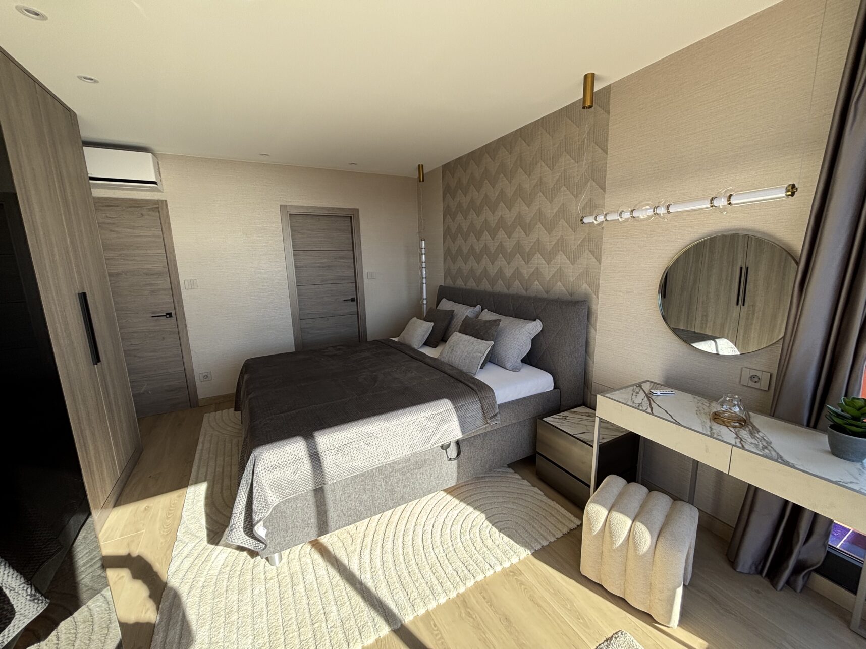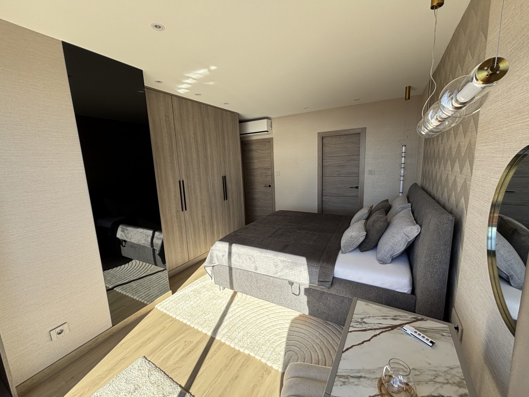 A cutting-edge smart home system runs throughout the apartment, combining concealed LED and ambient lighting, Maytoni designer fixtures, and a Bticino Living Now switch system for intuitive control. Smart climate management, high-speed fibre internet with boosters in every room, and a fully integrated electrical network ensure modern luxury at its most intelligent.