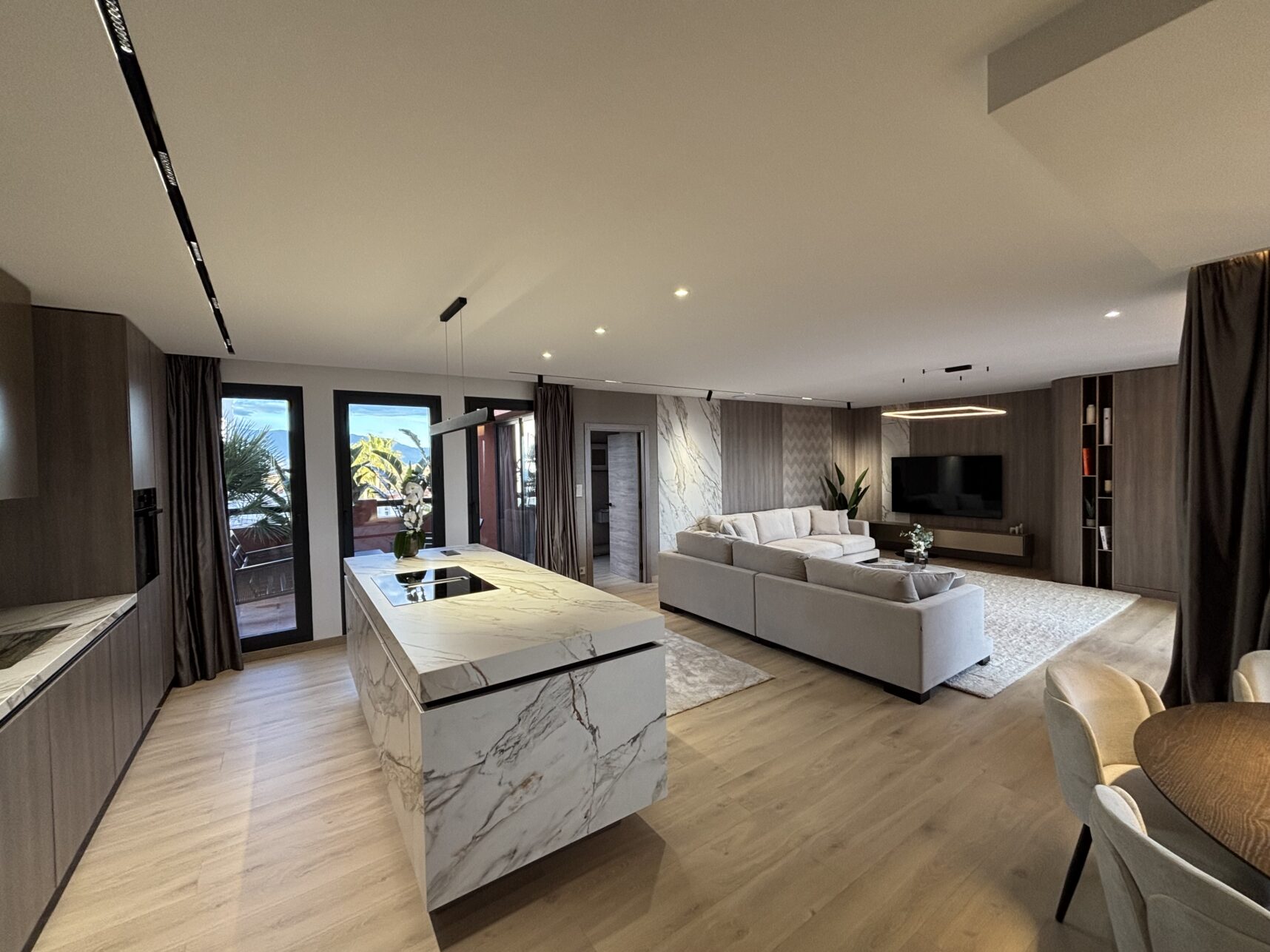 This outstanding residence delivers a refined balance of contemporary design, comfort, and breathtaking panoramic views. With a built area of 145 m², the apartment is complemented by two private terraces totalling 45 m², both beautifully landscaped with greenery and featuring a private jacuzzi. From here, uninterrupted 270° views unfold across the sea, coastline, and rolling hills — and on clear days, as far as Gibraltar and the distant coast of Africa. A private 14 m² garage with direct lift access adds an extra layer of comfort and exclusivity.
